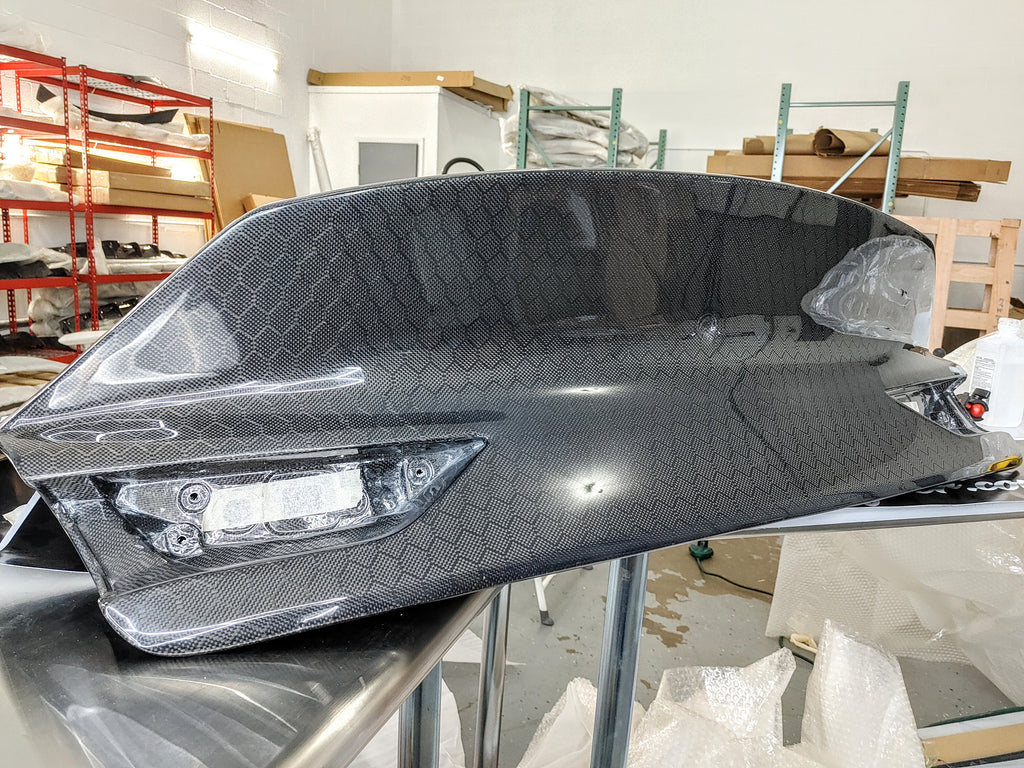 Carbon Fiber Duckbill Trunk for the Infiniti 2017+ Q60 Professional Installation is required to complete the process and to achieve OEM-like fitment | Drill Holes will need to be made. Modifications may be needed Freight Shipping: 1) Customer will Reply or Email Support@jaliscoscarbonfiber.com to schedule shipping |2) Shipping charge at checkout for the item is to be delivered to a Business-Warehouse 'type' location(Not limited Access area). You will be refunded back the difference if shipping does come out cheaper. You can provide the shipping address after the purchase is made and communication is completed via email. We can deliver to a Residential-Home location, however, the price will increase. In Stock Hoods, Trunks, Fenders: These items labeled in stock will ship from our Illinois warehouse within 1-12 Business days. as these items must be Palletized & Freight shipping must be set up. A $50 Non-refundable restocking fee will be applied to these orders if you decide to cancel prior to the item being shipped out