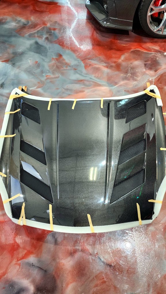 With the current limitation of Carbon Fiber Technology, it is impossible to guarantee that imperfections or 'bubbling' will not occur with handmade Hoods/Trunks/Fenders and other exterior items when considering the effect of Heat from the Vehicle/environment. Re-Clearing and Ceramic Coating your product can protect it from the environment and Refresh the look of your product but will not guarantee to avoid these issues.