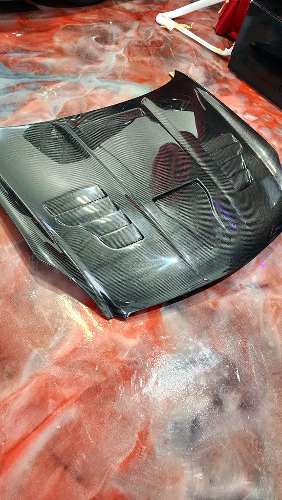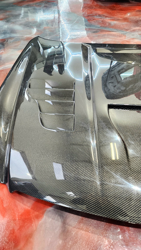 With the current limitation of Carbon Fiber Technology, it is impossible to guarantee that imperfections or 'bubbling' will not occur with handmade Hoods/Trunks/Fenders and other exterior items when considering the effect of Heat from the Vehicle/environment. Re-Clearing and Ceramic Coating your product can protect it from the environment and Refresh the look of your product but will not guarantee to avoid these issues.