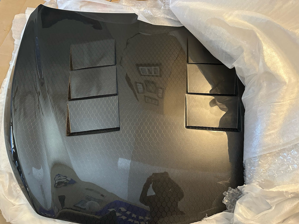 With the current limitation of Carbon Fiber Technology, it is impossible to guarantee that imperfections or 'bubbling' will not occur with handmade Hoods/Trunks/Fenders and other exterior items when considering the effect of Heat from the Vehicle/environment. Re-Clearing and Ceramic Coating your product can protect it from the environment and Refresh the look of your product but will not guarantee to avoid these issues.