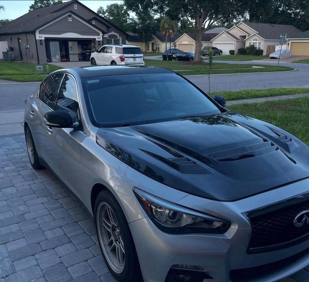 IN STOCK Q50 ATTACK Style Carbon Fiber Hood for your Infiniti Q50! Ships out from our Illinois Warehouse within 30-50 Business Days! Brand New Condition.