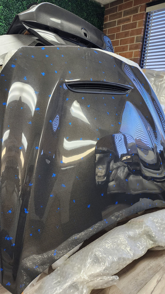 With the current limitation of Carbon Fiber Technology, it is impossible to guarantee that imperfections or 'bubbling' will not occur with handmade Hoods/Trunks/Fenders and other exterior items when considering the effect of Heat from the Vehicle/environment. Re-Clearing and Ceramic Coating your product can protect it from the environment and Refresh the look of your product but will not guarantee to avoid these issues.